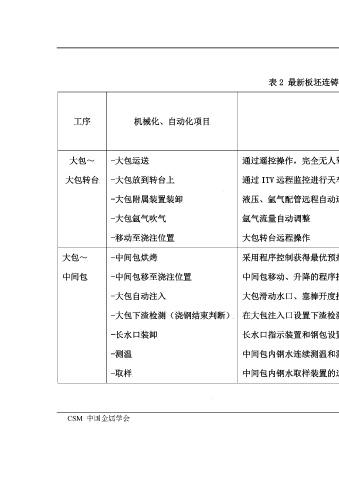 表 2 最新板坯连铸机机械化、自动化技术概要