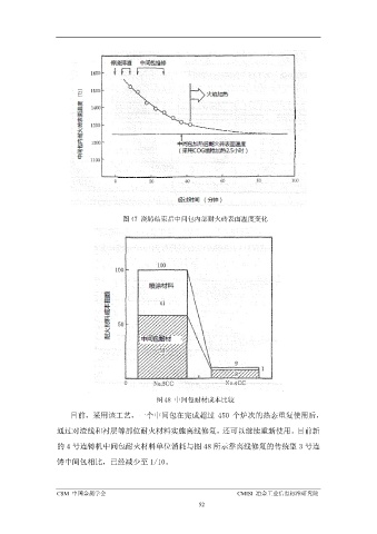 ᇏݓࣁඋ࿐߶ ᇏݓࣁඋ࿐߶ 图 47 浇铸结束后中间包内部耐火砖表面温度变化 ᇏݓࣁඋ࿐߶ ᇏݓࣁඋ࿐߶ 图 48 中间包耐材成本比较 目前,采用该工艺,一个中间包在完成超过 450 个炉次的热态重复使用后, 通过对渣线和衬层等部位耐火材料实施离线修复,还可以继续重新使用。目前新 的 4 号连铸机中间包耐火材料单位消耗与图 48 所示靠离线修复的传统型 3 号连 铸中间包相比,已经减少至 1/10。 ᇏݓࣁඋ࿐߶ CSM 中国金属学会 CMISI 冶金工业信息标准研究院 52