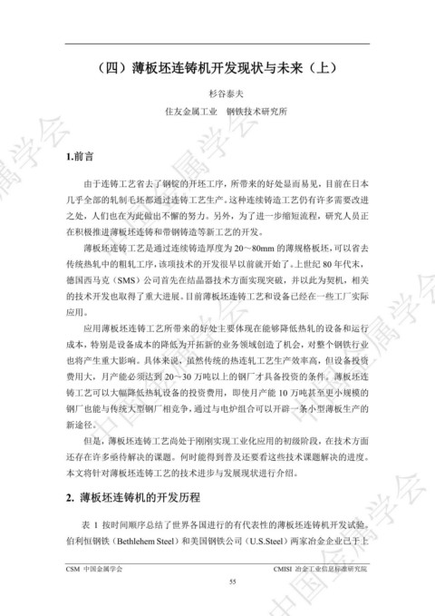 的技术开发也取得了重大进展。目前薄板坯连铸工艺和设备已经在一些工厂实际