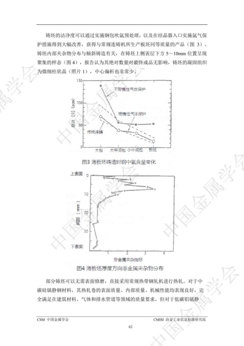 聚集的样态(图 4),报告认为其绝对数量对最终成品无影响,铸坯的凝固组织