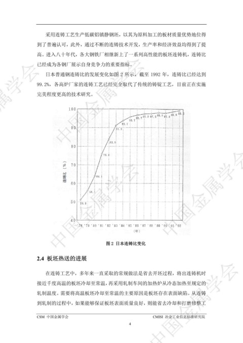 日本普通钢连铸比的发展变化如图 2 所示,截至 1992 年,连铸比已经达到