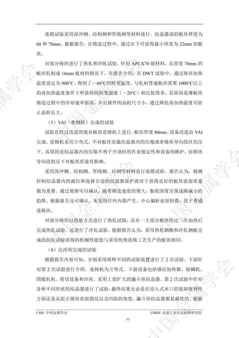 采用深冲钢、结构钢、管线钢、硅钢等材料进行连铸试验。报告认为,精确