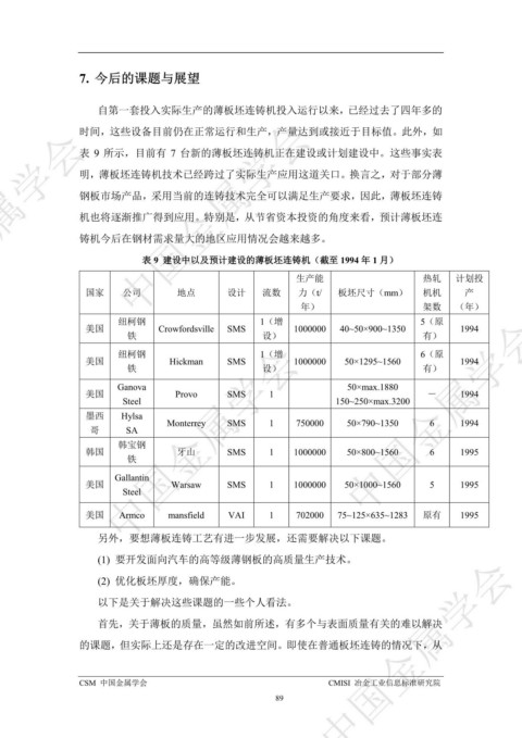 表 9 所示,目前有 7 台新的薄板坯连铸机正在建设或计划建设中。这些事实表