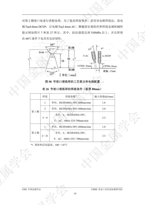 表 26 窄坡口埋弧焊的焊接条件(板厚 80mm)