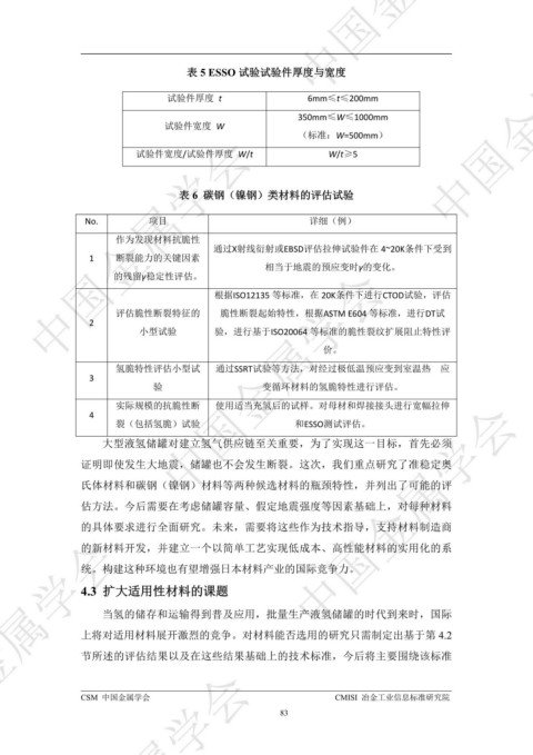 小型试验 验,进行基于ISO20064 等标准的脆性裂纹扩展阻止特性评