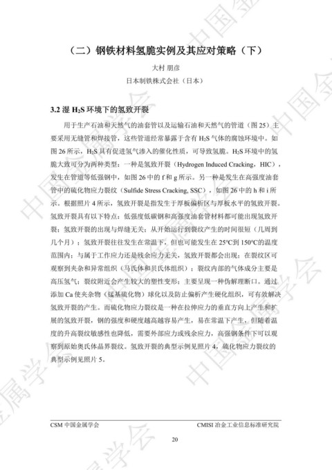 氢致开裂的产生。而硫化物应力裂纹是一种在拉伸应力的垂直方向上产生和扩