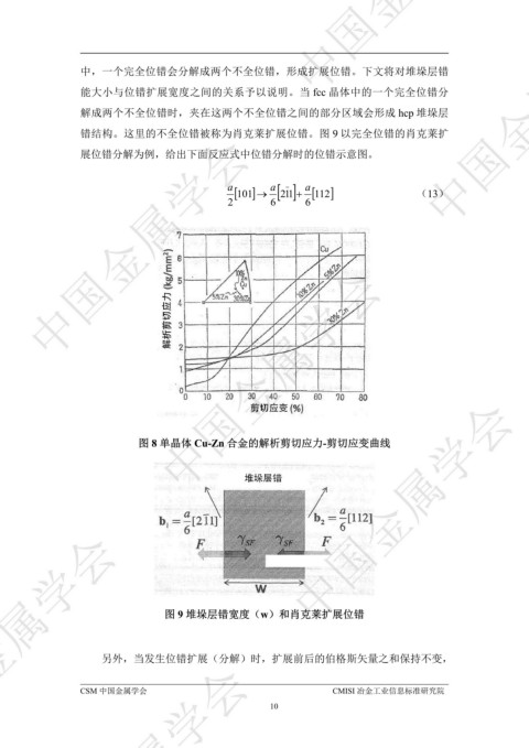 图 9 堆垛层错宽度(w)和肖克莱扩展位错