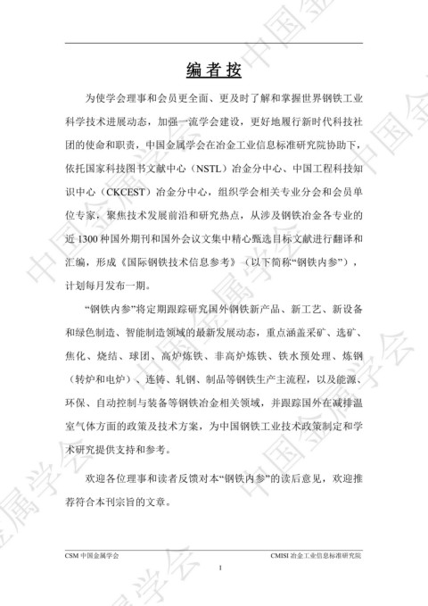 汇编,形成《国际钢铁技术信息参考》(以下简称“钢铁内参”),