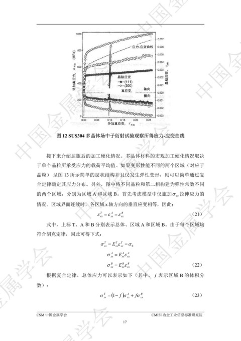 图 12 SUS304 多晶体场中子衍射试验观察所得应力-应变曲线 ᇏݓࣁඋ࿐߶
