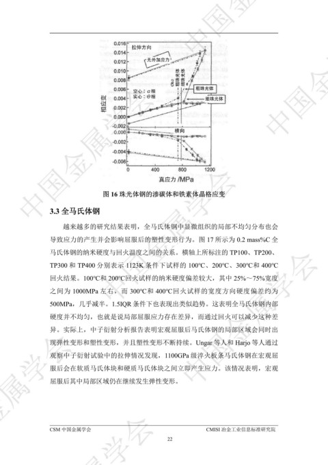 图 16 珠光体钢的渗碳体和铁素体晶格应变 ᇏݓࣁඋ࿐߶
