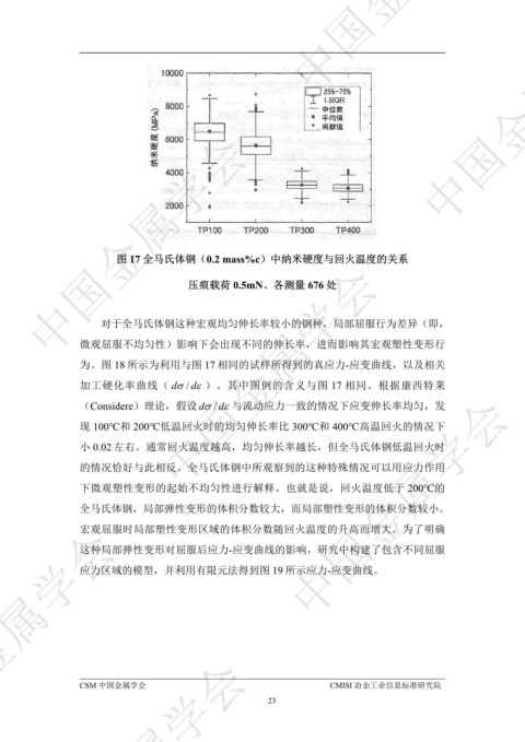 图 17 全马氏体钢(0.2 mass%c)中纳米硬度与回火温度的关系 ᇏݓࣁඋ࿐߶