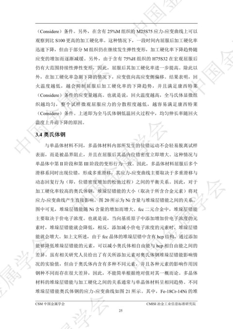 堆垛层错能奥氏体钢的应力-应变曲线如图 21 所示。其中,Fe-18Cr-14Ni 的堆