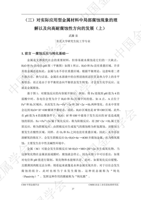 (三)对实际应用型金属材料中局部腐蚀现象的理