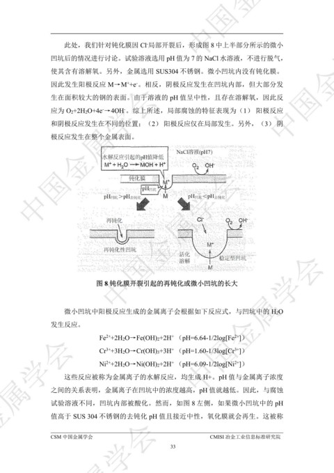 微小凹坑中阳极反应生成的金属离子会根据如下反应式,与凹坑中的 H2O