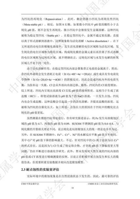 钝化 pH 值,则不会发生再钝化。微小凹坑中会继续发生金属溶解。这种凹坑 ᇏݓࣁඋ࿐߶