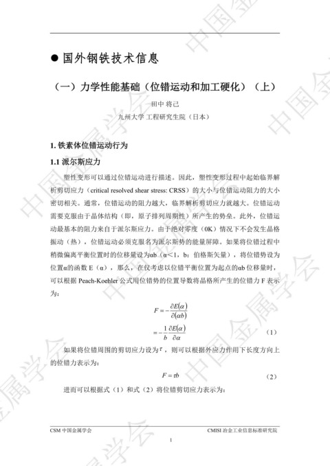 (一)力学性能基础(位错运动和加工硬化)(上)