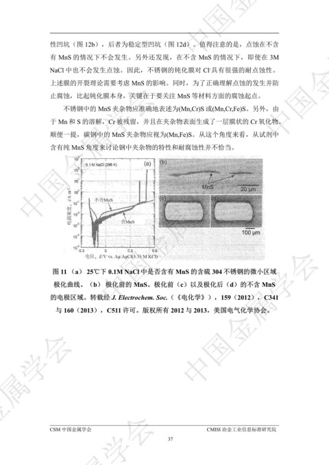 含有纯 MnS 角度来讨论钢中夹杂物的特性和耐腐蚀性并不恰当。 ᇏݓࣁඋ࿐߶