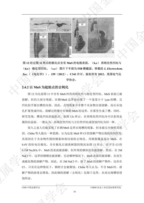Cl 。只有在这种情况下,钢材才会被腐蚀。Chiba 等人认为,不含 MnS 时,溶