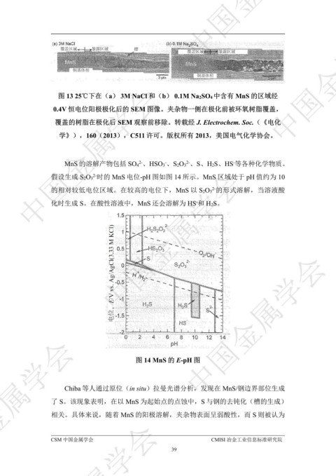 相关。具体来说,随着 MnS 的阳极溶解,夹杂物表面呈弱酸性,而 S 则被认为