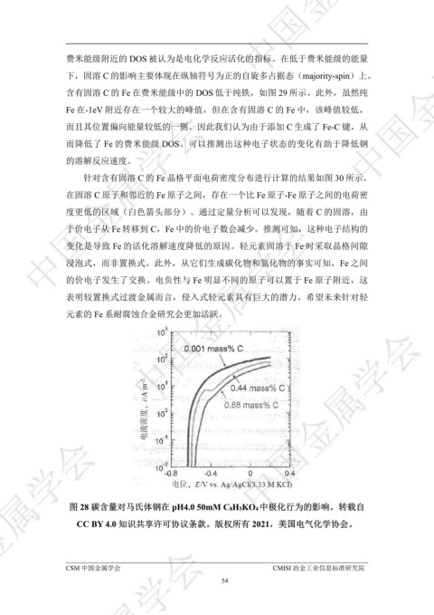 而降低了 Fe 的费米能级 DOS。可以推测出这种电子状态的变化有助于降低钢