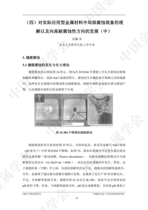 (pH 值为 7)中的 SUS304 不锈钢。如图 35,最初在缝隙内外均发生通过钝化