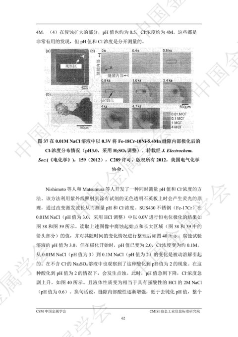 理,通过改变激发波长从而测量 pH 和 Cl 浓度。SUS430 不锈钢(Fe-17Cr)在