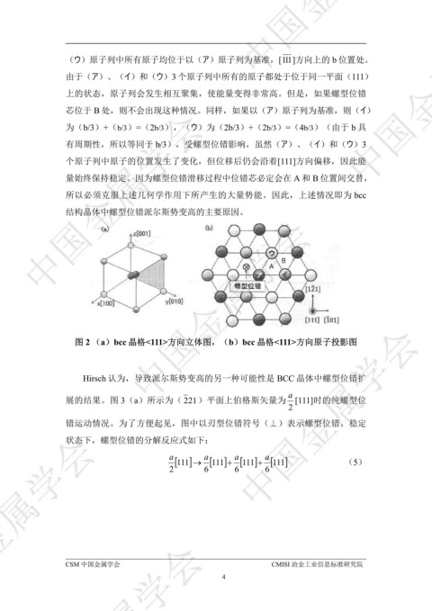 展的结果。图 3(a)所示为( 212 )平面上伯格斯矢量为 [111]时的纯螺型位