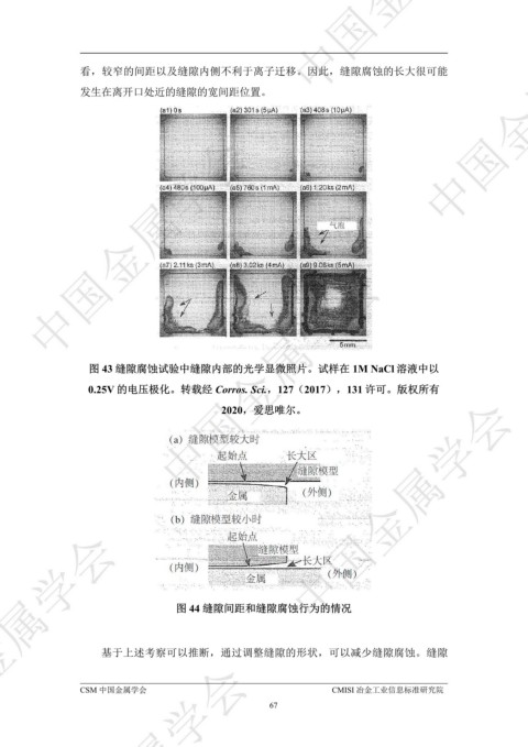 看,较窄的间距以及缝隙内侧不利于离子迁移。因此,缝隙腐蚀的长大很可能 ᇏݓࣁඋ࿐߶