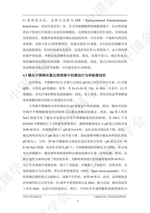 4.3 敏化不锈钢在氯化物溶液中的腐蚀行为和耐腐蚀性