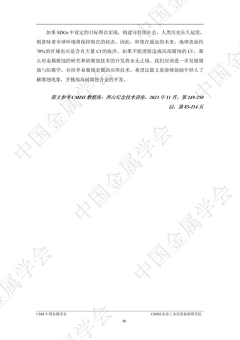 蚀与防腐学,并培养易腐蚀金属的应用技术。希望这篇文章能够鼓励年轻人了